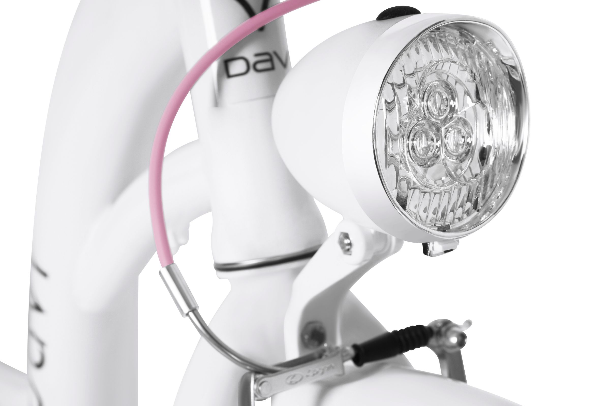 Cykeln är utrustad med en inbyggd LED-belysning som lyser upp till 100 meter, vilket garanterar synlighet och säkerhet även under kvällskörning eller i skymning. Med Davi Amelia kan du känna dig trygg och säker på att ditt barn syns väl på vägen.